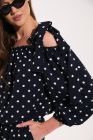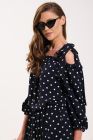 В левое плечо вставлены декоративные бретели, создающие элегантный бант.