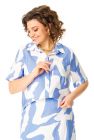 Перед с отрезной планкой, нагрудной вытачкой и накладным карманом с левой стороны.