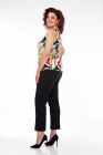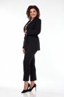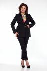 Брюки зауженные к низу, с центральной застёжкой на молнию и петлю-пуговицу.