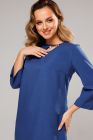 По переду горловина выполнена с вырезом "капля" и декоративной брошью.