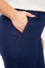 Брюки зауженные к низу, с центральной застёжкой на молнию и петлю-пуговицу.
