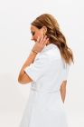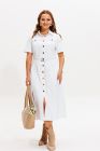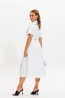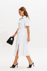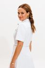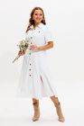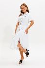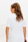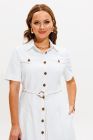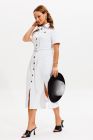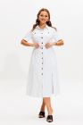 Внутренние кокетки, стойка, нижний воротник и обтачка рукава выполнены из отделочной хб ткани с мелким принтом.