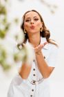 Полочка и спинка с кокетками, рельефами, фигурным подрезом ниже линии талии и отделочными строчками.