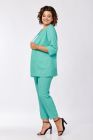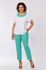 Брюки зауженные к низу, с центральной застёжкой на молнию и петлю-пуговицу.