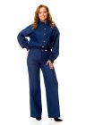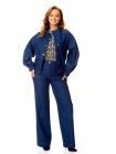 Брюки прямого силуэта с центральной застёжкой на молнию и петлю-пуговицу.