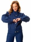 Низ рукава обработан отрезной манжетой на резинке и декоративными патами с застежкой на кнопку.