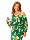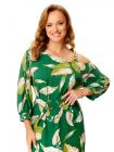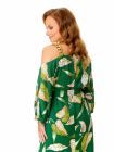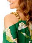 Горловина ассимертричная округлой формы с декоративной цепью на левом плече.