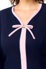 На мысик горловины пришита золотистая протяжка, в которую вставлен бантик контрастного цвета.