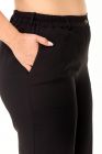 Брюки зауженные к низу, с центральной застёжкой на молнию и петлю-пуговицу.