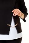 Перед ассиметричный с нагрудными вытачками, оригинальным вырезом и декоративной подвеской.