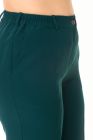 Брюки зауженные к низу, с центральной застёжкой на молнию и петлю-пуговицу.