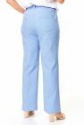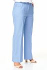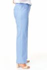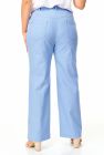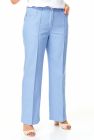 Брюки прямого силуэта с центральной застёжкой на молнию и петлю-пуговицу.