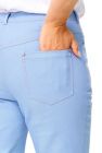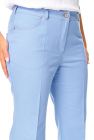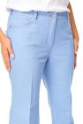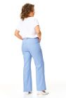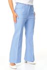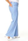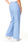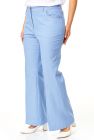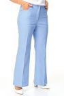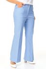 Брюки клёш от колена с центральной застёжкой на молнию и петлю-пуговицу.
