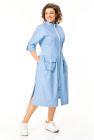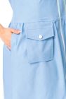 По переду, в шов притачивания нижней части платья, вставлены отлетные карманы с клапаном.