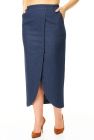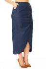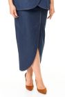 По переду выполнена имитация "запаха" с высоким разрезом и закругленным низом передних полотнищ юбки.