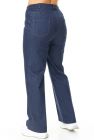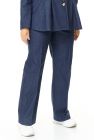 Брюки прямого силуэта с центральной застёжкой на молнию и петлю-пуговицу.
