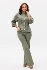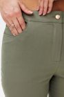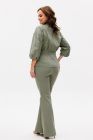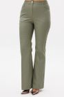 Брюки клёш от колена с центральной застёжкой на молнию и петлю-пуговицу.