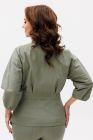 Перед и спинка отрезные по линии талии со встречными складками выходящими из подреза.