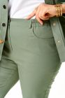 Брюки прямого силуэта с центральной застёжкой на молнию и петлю-пуговицу.
