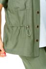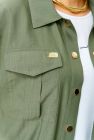 По переду имеются накладные карманы с бантовыми складками и клапанами.