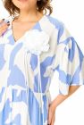 Перед и спинка выполнена последовательными оборками создающими легкое расклешение низу.