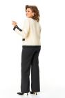 Брюки прямого силуэта с центральной застёжкой на молнию и петлю-пуговицу.