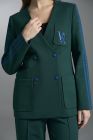 На кокетках жакета, рукавах и лампасах брюк выполнена декоративная вышивка.
