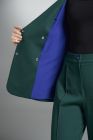 Жакет свободного покроя на подкладке контрастного цвета.