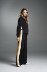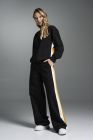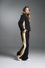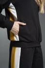 Полочка с лампасами из контрастной ткани и карманами в рельефах.